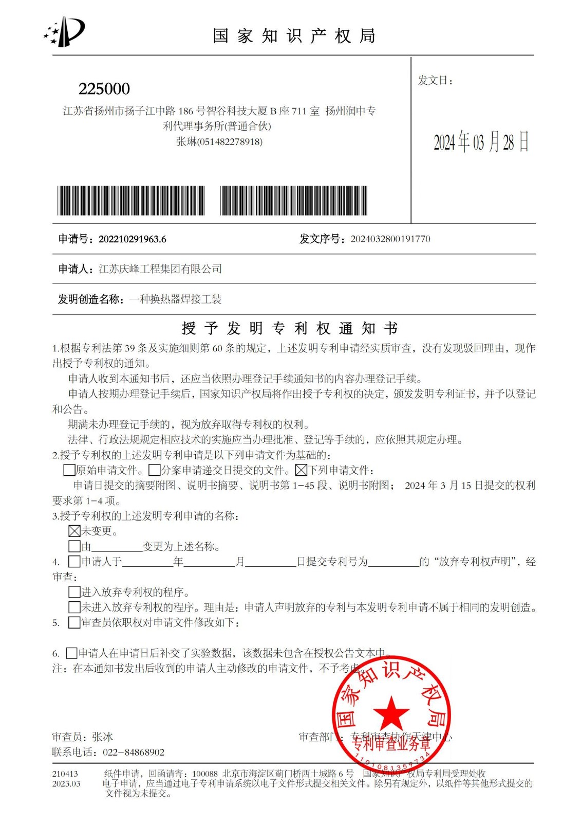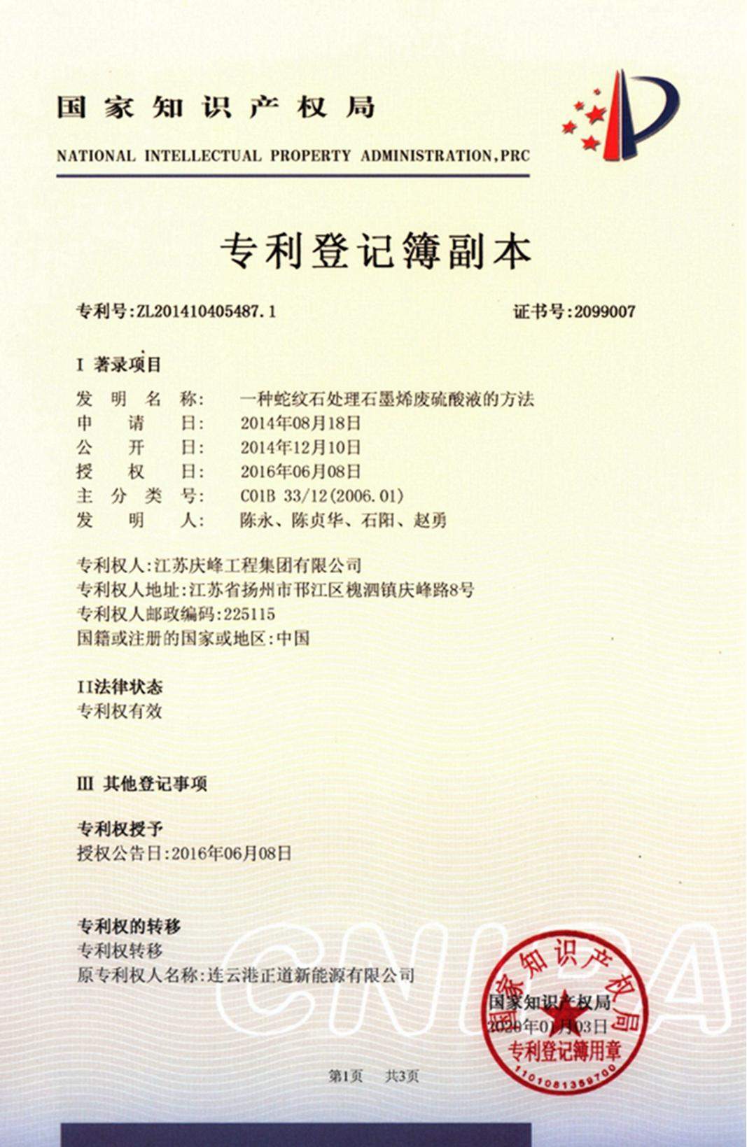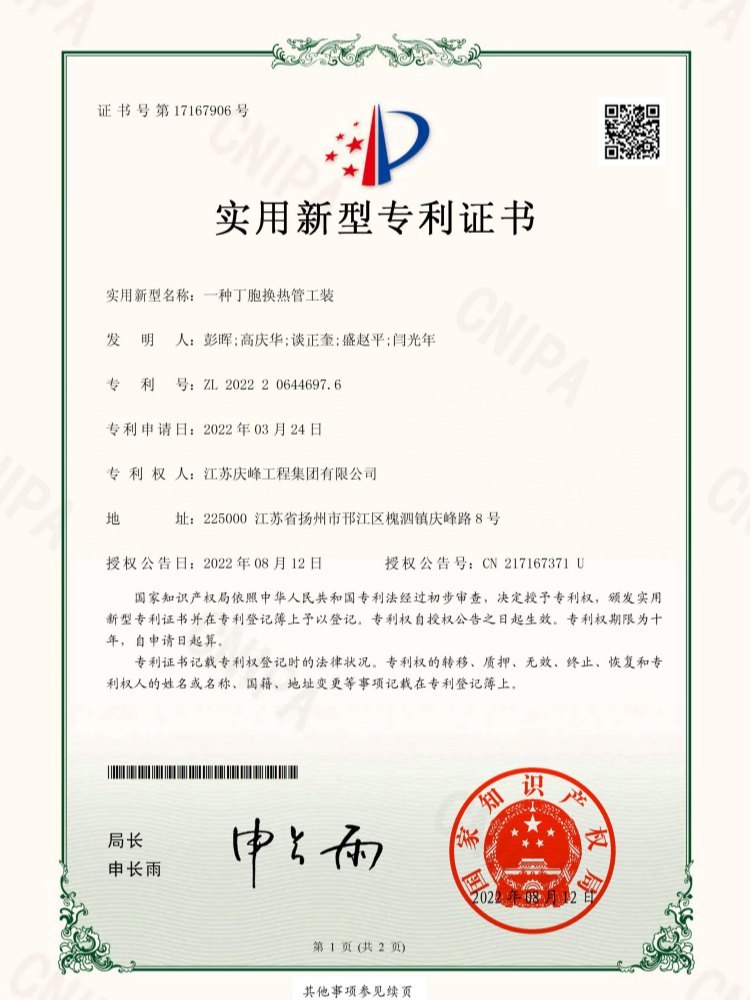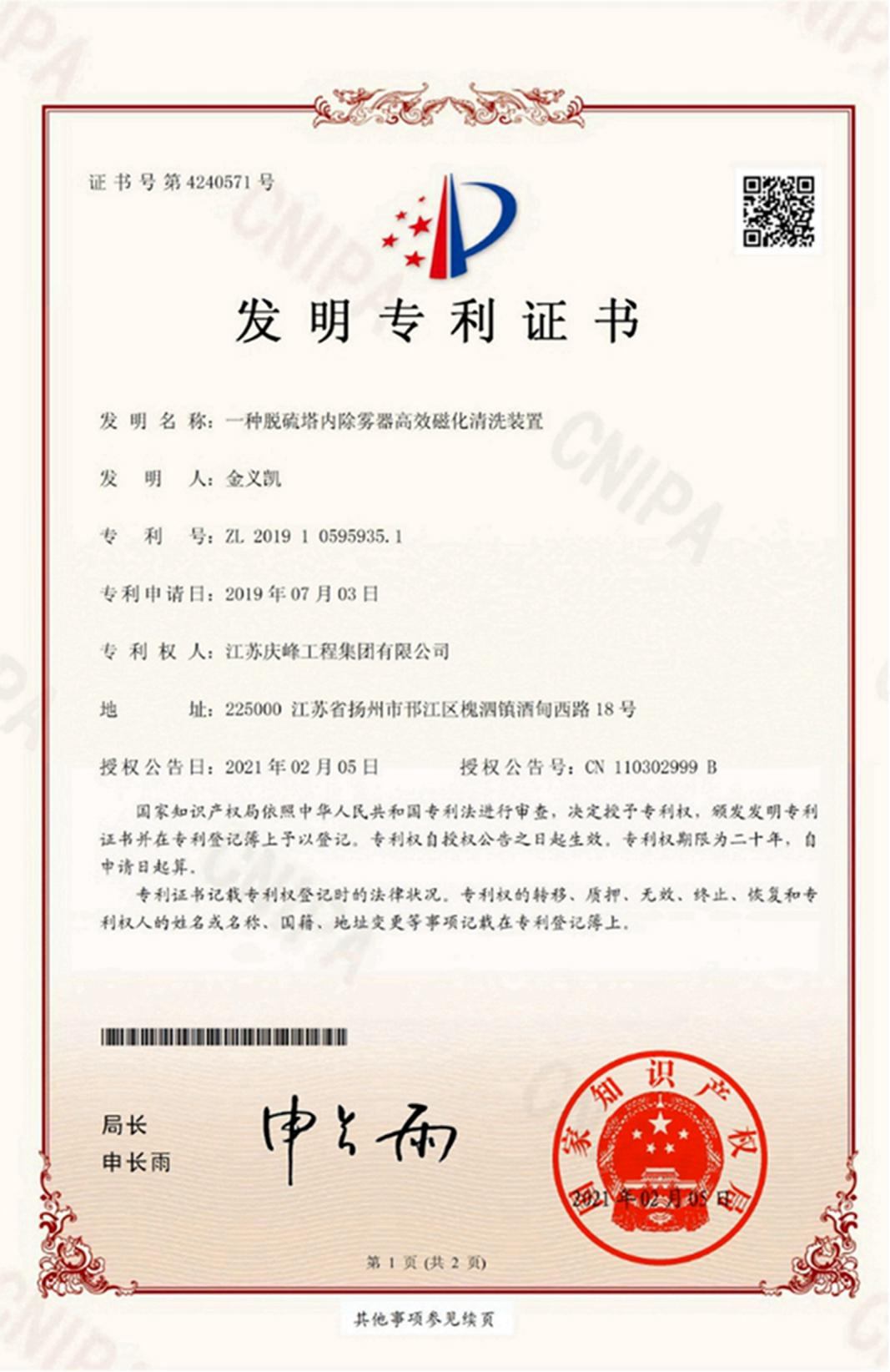您當前的位置:首頁 - 關于慶峰 - 專利證書