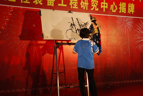 不甘示弱,也獻上自己的拿手絕活,蒼勁有力的字體贏得了臺下的掌聲。